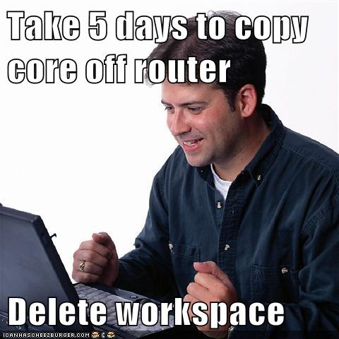 Take 5 Days To Copy Core Off Router Delete Workspace Cheezburger